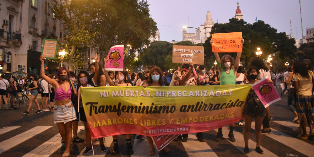 Identidad Marrón en la marcha 8M en CABA, encolumnades como Colectivo transfeminista y antirracista. Foto @wari.alfaro