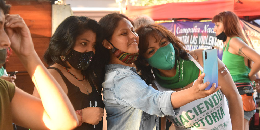 Integrantes del Colectivo Identidad Marrón. Durante la aprobación de la Ley de Interrupción Voluntaria del Embarazo. Foto: @wari.alfaro