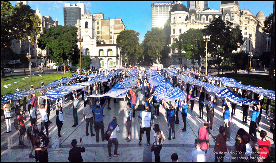 Bandera azul de los desaparecidos, conmemoración en pandemia, 24 de Marzo, 2021. Foto: Mónica Hasenberg