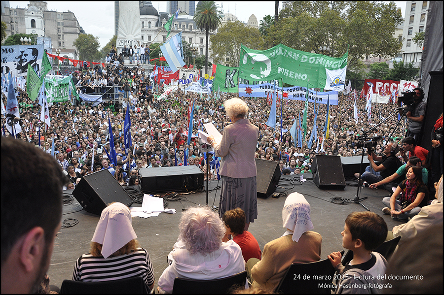 Lectura colectiva del documento, Estela de Carlotto en el escenario, 24 de Marzo, 2015. Foto: Mónica Hasenberg