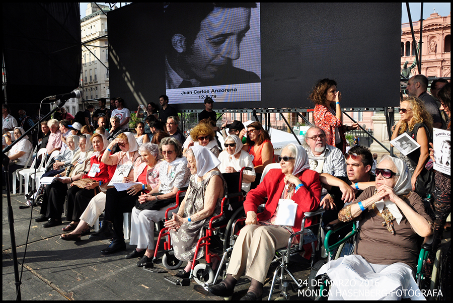 Muchas de esas Madres actualmente recorren unas cuadras junto a la muchedumbre en sillas de ruedas, acompañadas de quienes todos los días se ocupan de que no les falte ningún cuidado y que garantizan que a pesar del gentío que las quiere abrazar, lleguen al escenario para reafirmar el NUNCA MÁS de ese año.