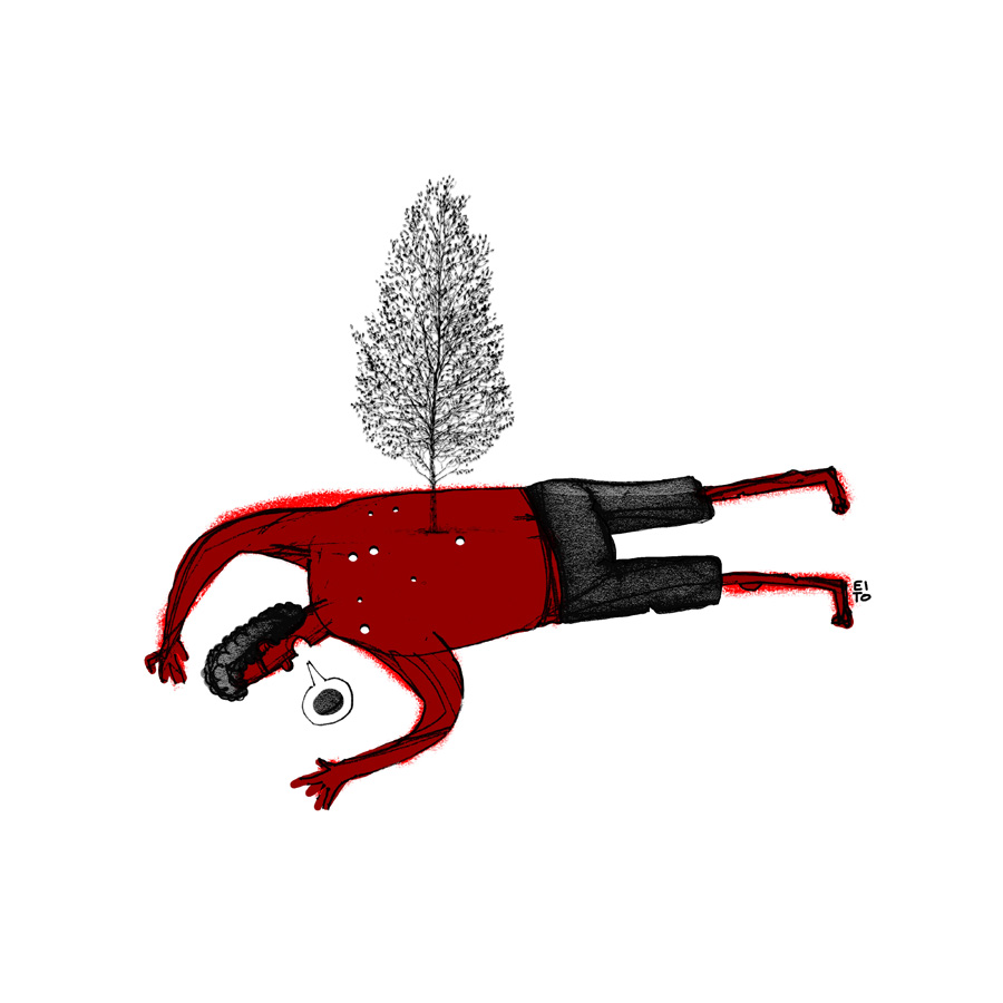 Alguien grita se oyen jadeos entrecortados el eco de un estallido y de un cuerpo que desciende sostenido por momentos enredados entre las ramas.