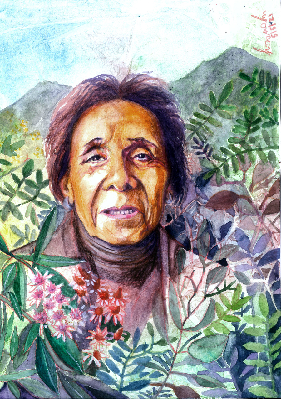 La militante ambiental y artista plástica cordobesa Rossana Rossi retrató a Yolanda en el entorno que tanto disfrutaba: la naturaleza y las montañas.