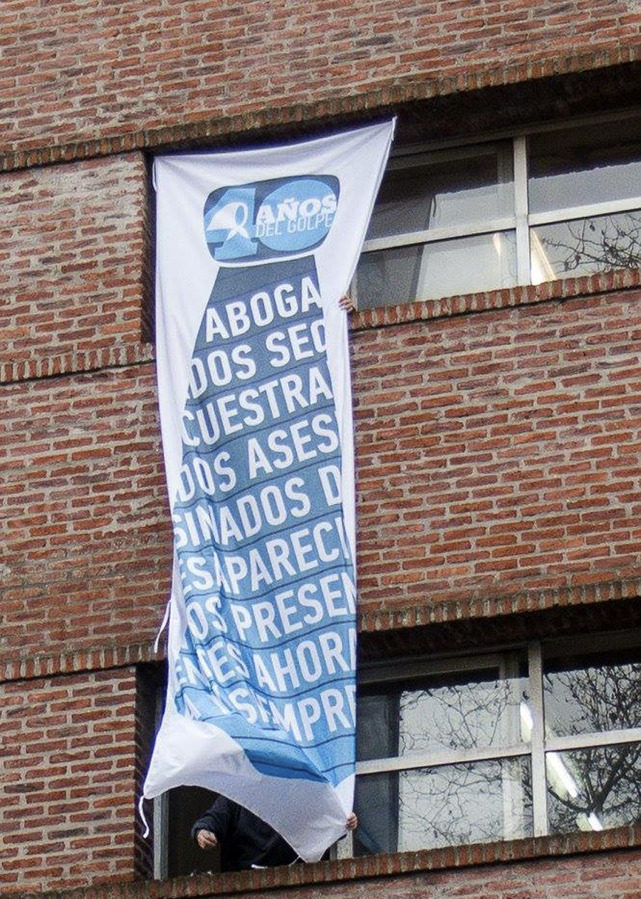 [1] Las personas detenidas y desaparecidas fueron: Norberto Centeno (abogado), Salvador Manuel Arestín (abogado), Raúl Hugo Alais (abogado), Tomás José Fresneda (abogado), Jorge Candeloro (abogado), María de las Mercedes Argañaraz (embarazada de cuatro meses), Néstor Enrique García Mantica y María Esther Vázquez de García. A su vez, quienes estuvieron desaparecidos y luego fueron liberados son: Camilo Ricci (abogado), Carlos A. Bozzi (abogado), Martha García, José Verde (abogado) y Ana María de la Arena.