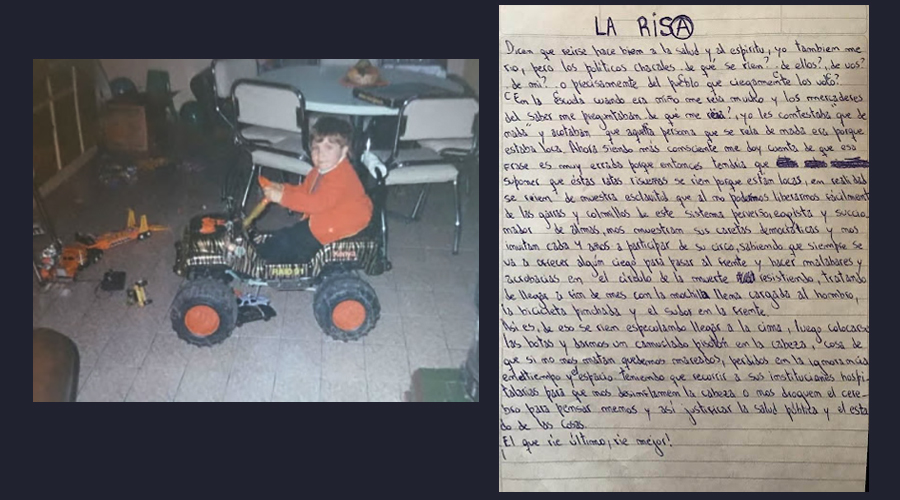 Santiago Maldonado de chico y uno de sus escritos. Foto: Gentileza familia Maldonado, 25 de Mayo.
