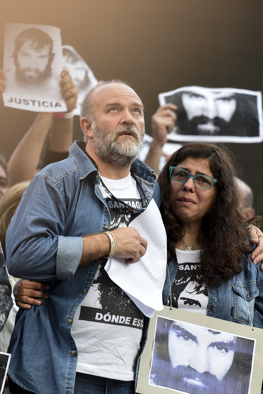 Sergio Maldonado, junto a su mujer Andrea, al finalizar el acto para reclamar justicia para Santiago, cuyo cuerpo fue encontrado luego de casi 80 días de desaparecido, desde la represión de gendarmería. 1 de noviembre, 2017, Bs. As. Foto: Soledad Vázquez/ Fototeca ARGRA.