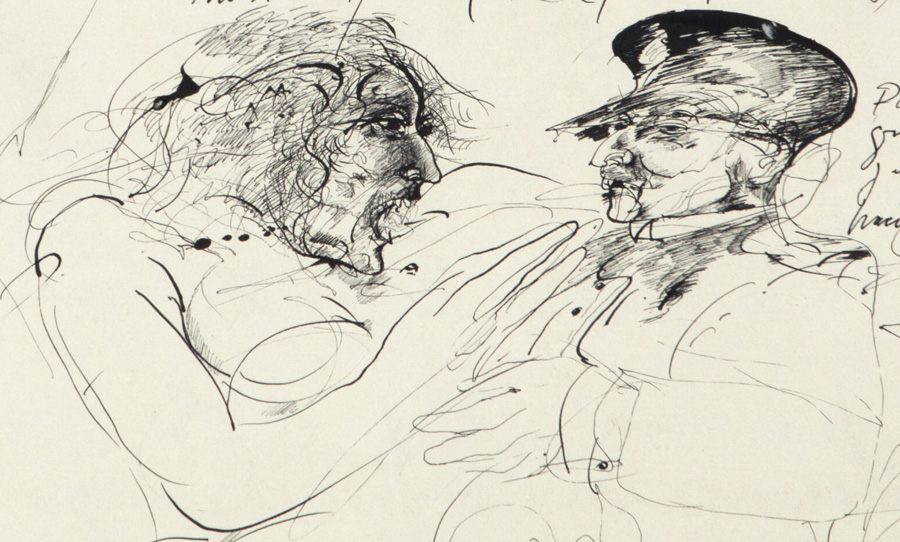 Artista argentino nacido en Paraná en 1941. El dibujo funcionó para Aymá como vehículo de denuncia. En obras como “Glorias de Juan Gelman” que forma parte del patrimonio del Conti, Aymá decidió alternar el dibujo con una escritura fluida, incluyendo fragmentos del poema del escritor, poeta y militante argentino.