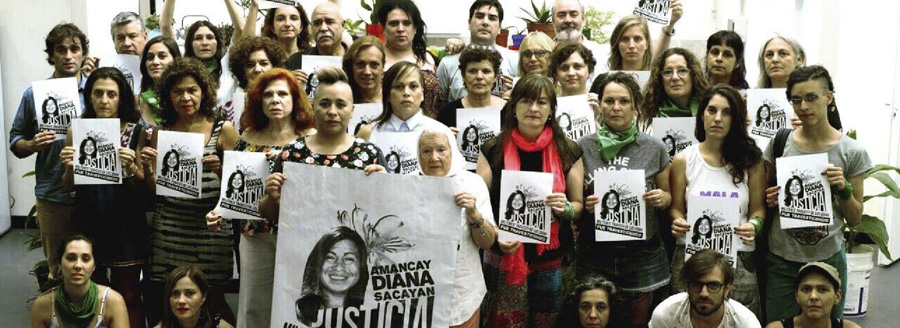 Familiares, activistas y referentes de organismos de DD.HH. pidiendo justicia por el travesticidio de Diana Sacayán. Fuente: https://www.defensorba.org.ar