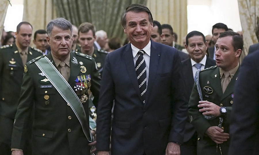 "Bolsonaro aumenta el número de soldados en 30 agencias federales Según una encuesta de Folha de S.Paulo, más de 2.500 puestos de liderazgo o asesoramiento en ministerios y oficinas están ocupados por personal militar." Fuente: https://pt.org.br, 14 de octubre, 2019. Foto: Marcos Corrêa
