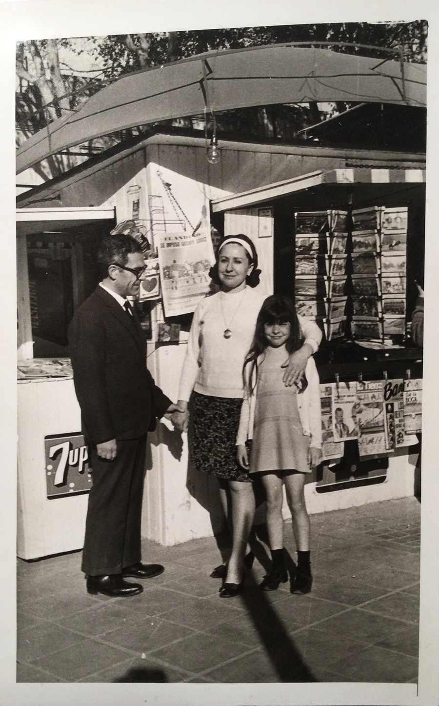Antonio Di Benedetto con su esposa e hija junto a una edición de El Andino. Foto: Gentileza Adriana Hidalgo.