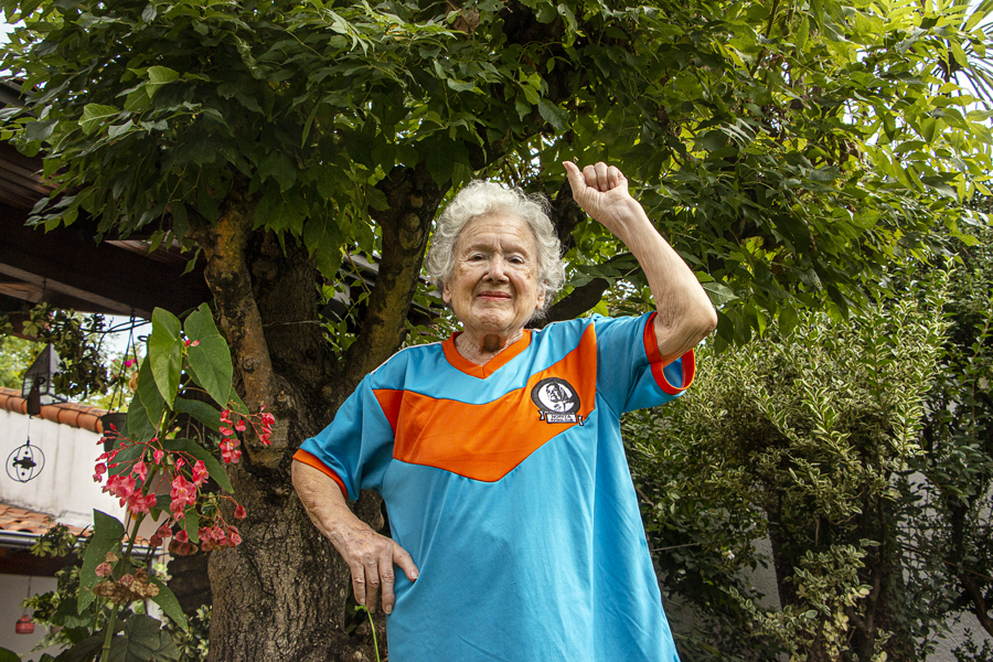 Norita Cortiñas. Madre de Plaza de Mayo Línea Fundadora e hincha nº 1 de Norita Fútbol Club, un equipo feminista de la Ciudad de Buenos Aires integrado por un colectivo de mujeres que pisan las canchas como un acto político. Foto: Cecilia Rossi. Norita Fútbol Club / Argentina