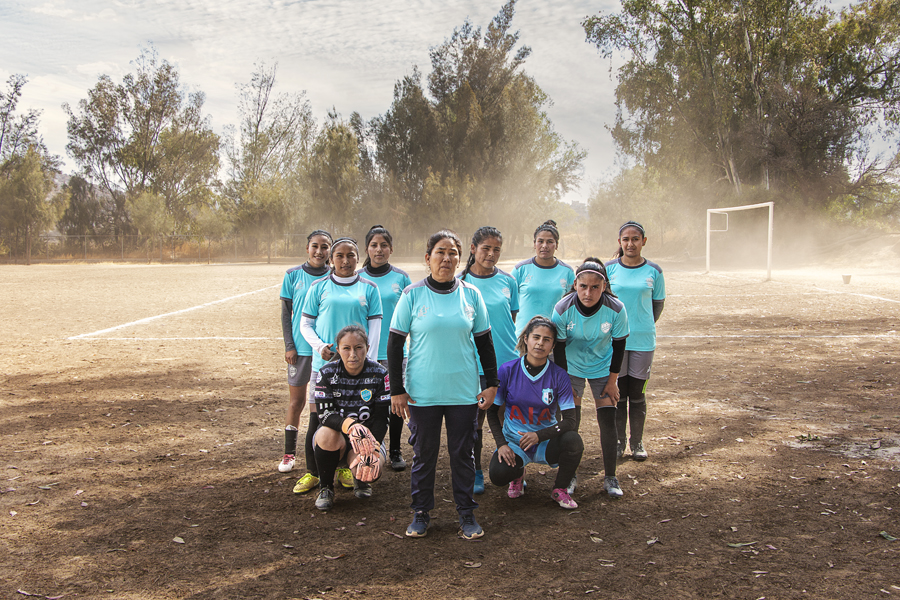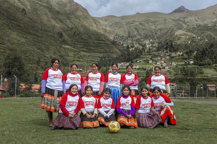 Equipo Femenino Deportivo Huilloc. Las integrantes del Club de Fútbol Deportivo Central Huilloc posan por primera vez par una foto grupal en la Comunidad indígena quechua de Huilloc a 4000 m.s.n.m. donde el fútbol femenino se juega con pasión, sin importar las inclemencias del clima y lugar. Foto: Natalié Fernández García. Huilloc Fútbol de los Andes / Perú