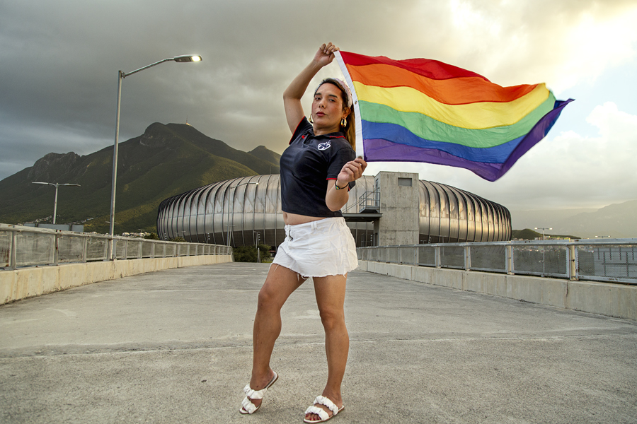 Ana Eugenia Rodríguez. Apasionada del fútbol, hincha rayada. Es periodista y activista contra la homofobia en el deporte. También colabora con el Observatorio Nacional de Crímenes de Odio contra Personas LGBT+. Primera mujer trans en ser regidora del Ayuntamiento de Monterrey, en Nuevo León. Foto: Velia Rocío de la Cruz Herrera. Club de Fútbol Monterrey / México