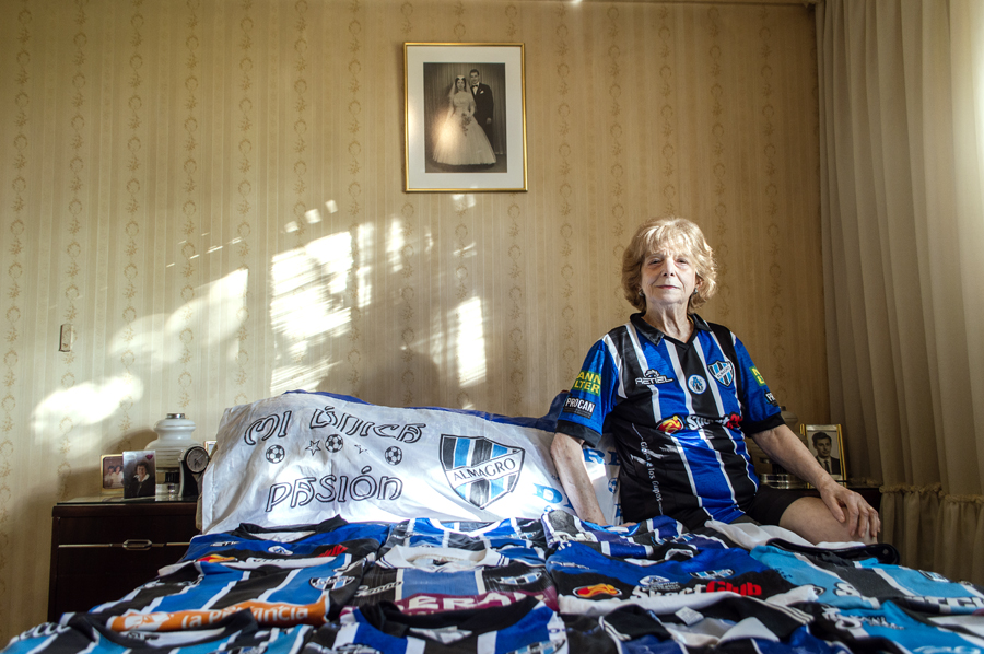 Dora Guises. Se crió en el seno de un hogar futbolero. A los 12 sus padres la apartaron de los estudios para que ayudara con las tareas hogareñas. Aún así, en épocas donde el fútbol no era común entre las mujeres y a pesar de la oposición de su madre, sus tardes sabatinas estaban destinadas a recorrer -junto a su padre- diversos estadios para acompañar a su querido Almagro. Foto: Leila Rajtman. Club Almagro / Argentina