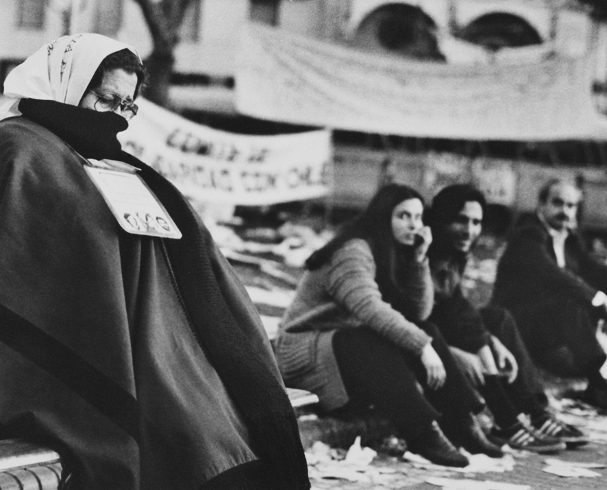 A la mañana siguiente, decidieron ir a la Plaza con una mesa, un megáfono y unos papeles para que la gente firmara el comunicado. Antes de salir, prendieron la tele y vieron que estaban arrastrando de los pelos a una piba embarazada. Hebe le dijo a su compañera Beba de Petrini: “Vámonos ya, mirá lo que está pasando”. Y se fueron juntas para la Plaza. Cuando llegaron, fueron a preguntarles a los milicos dónde estaba esa piba. Después pusieron la mesa y el megáfono, al ratito llegaron policías y rompieron todo a las piñas.