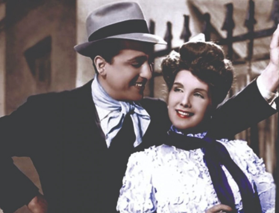Del Carril junto a Libertad Lemarque en La Cabalgata del circo, película que protagonizó y donde conoció a la joven actriz Eva Duarte. 1945