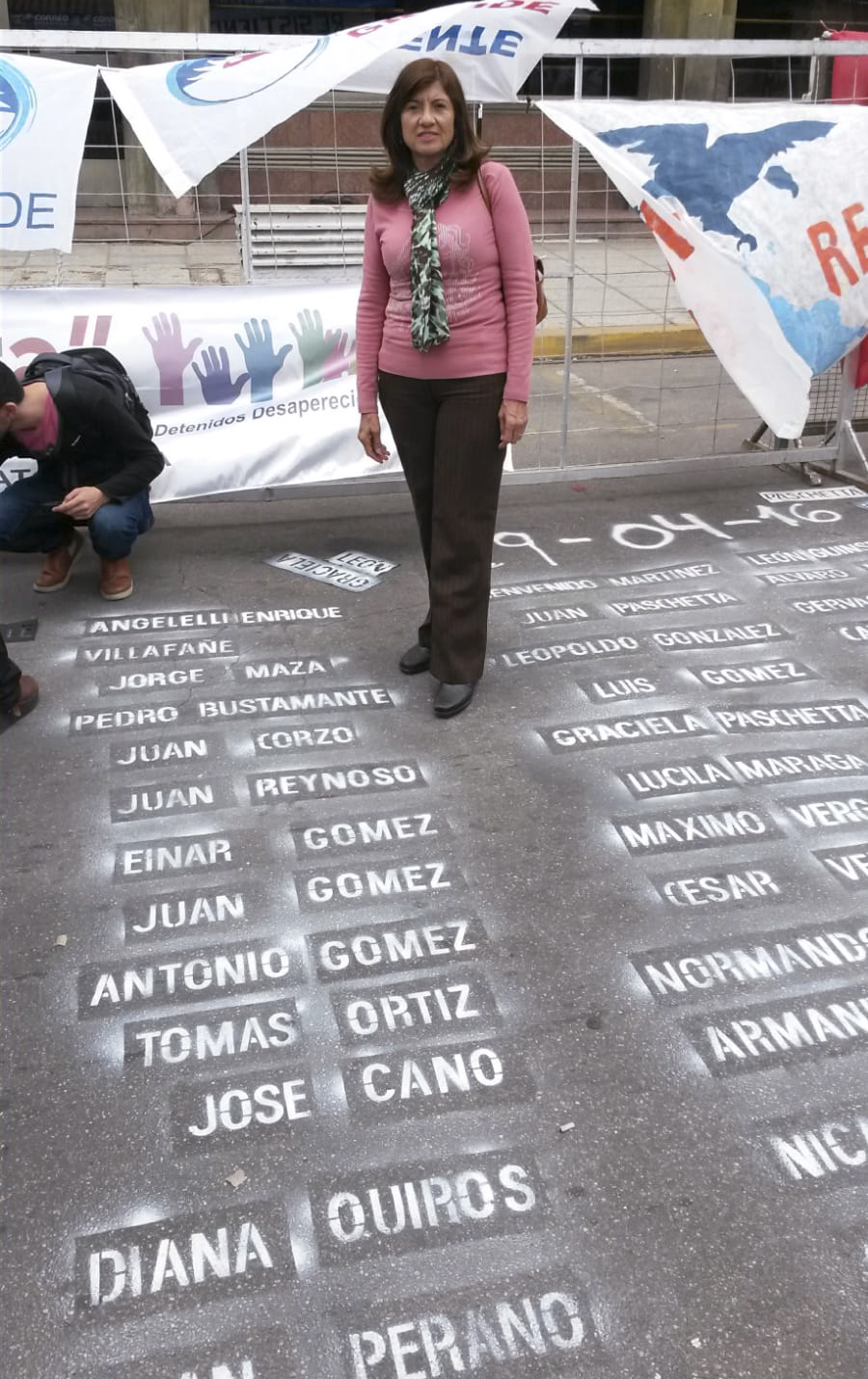 Consciente de la responsabilidad y la obligación moral que sentía por la experiencia vivida me sume rápidamente a la lucha incansable de las Madres de Plaza de Mayo y organismos de derechos humanos en la búsqueda de Memoria, Verdad y Justicia. La historia me interpelaba de otra manera; había que reconstruir la memoria y la verdad histórica-colectiva, exigir la reparación del daño causado por el terrorismo de Estado y esa reparación es y será siempre el juzgamiento y condena de los responsables de los crímenes de lesa humanidad. Luego de muchos años de impunidad, de avances y retrocesos, los sobrevivientes pudimos dar testimonio de lo vivido, y en las audiencias se vivieron momentos de mucha angustia y dolor, se escucharon historias que nos retrotraerían a los años oscuros de nuestra patria pero ahí estaba de nuevo el afecto, el abrazo que nos contenía y el apoyo de los y las compañeras, de la familia, como antes, como siempre. Sin ese apoyo y contención no hubiera sido posible la reconstrucción de la memoria. Las heridas causadas en tiempo de horror están empezando a cicatrizar, el tiempo dirá si esas heridas algún día cerrarán pero mientras tanto testimoniamos en los juicios, andamos, reímos, nos sumamos a las luchas femeninas, con nuestra historia a cuestas. Sigo soñando y bregando por una sociedad más justa y equitativa.