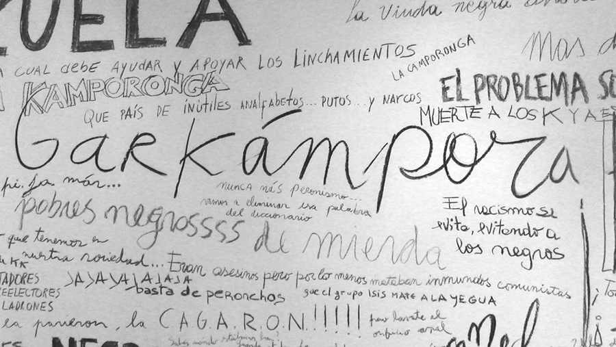 Detalle de Los diarios del Odio. Obra de Roberto Jacoby y Syd Krochmalny, octubre 2014. Foto: Gentileza Roberto Jacoby