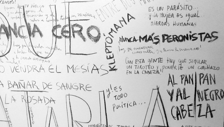 Detalle de Los diarios del Odio. Obra de Roberto Jacoby y Syd Krochmalny, octubre 2014. Foto: Gentileza Roberto Jacoby