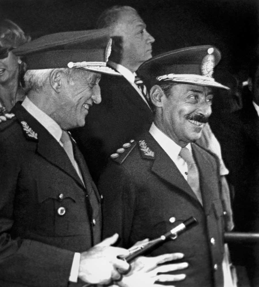 Galtieri y Videla en un desfile militar en el Regimiento de Granaderos a Caballo, 1982. Foto: Eduardo Longoni.