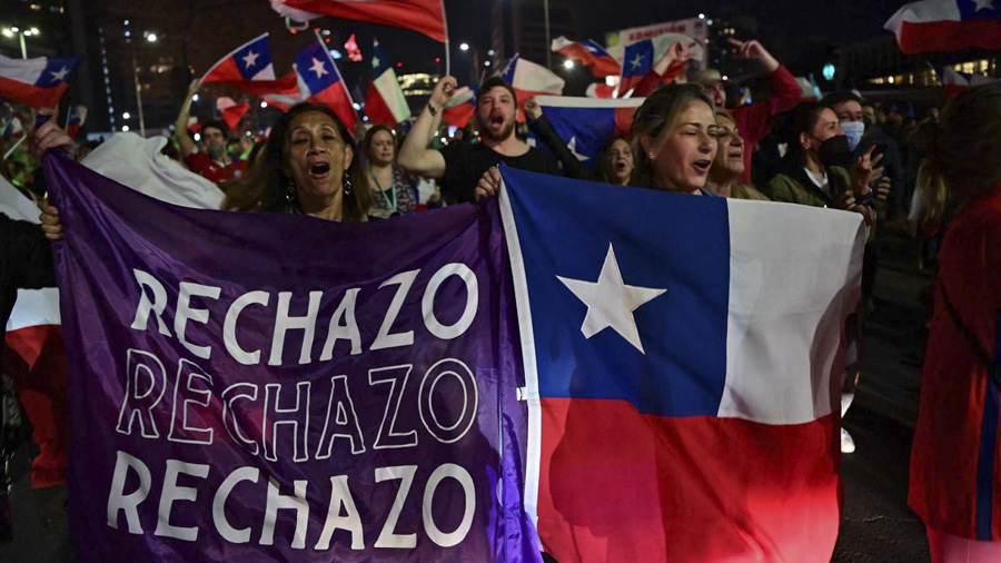La reforma constitucional lanzada por el gobierno de Boric fracasó tras un rechazo de su proyecto por parte del 62% de la ciudadanía, agosto 2020. Foto: AFP