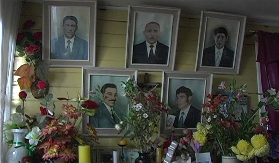 En el gesto de representar las imágenes en pintura, hay una intención de poseer simbólicamente la imagen, en el mismo sentido en que se posee un retrato fotográfico de una persona, pero por medio de la pintura en una versión única e irrepetible, como lo eran las personas cuyo cuerpo físico ha desaparecido. Hay también en el retrato pintado al óleo una carga de valor en la traducción de la fotografía a la pintura en tanto objeto; existe en ella una cierta religiosidad que hoy está asociada a su valor de mercado y que se ha convertido en el sustituto de aquello que perdieron las pinturas cuando la cámara posibilitó la reproducción de las imágenes. La pintura (original) tiene una función nostálgica (Berger, 1972 p.24). Como marca Elena en su testimonio, la importancia que tiene el objeto para ella pesó más que su costo: “Hacen años ya poh, que tengo todas estas fotos…Me ha costado pa mandarlas a hacer, pero las he hecho. Tengo un altar acá arriba y otro abajo. Los de abajo me salieron caros, porque son todas óleo” (Elena Maureira, 2006 mín.8:50).