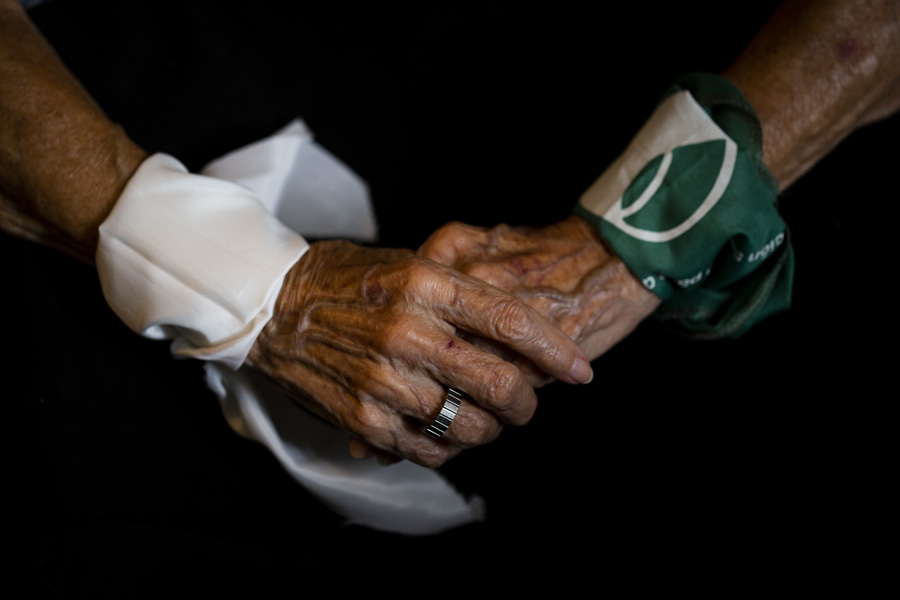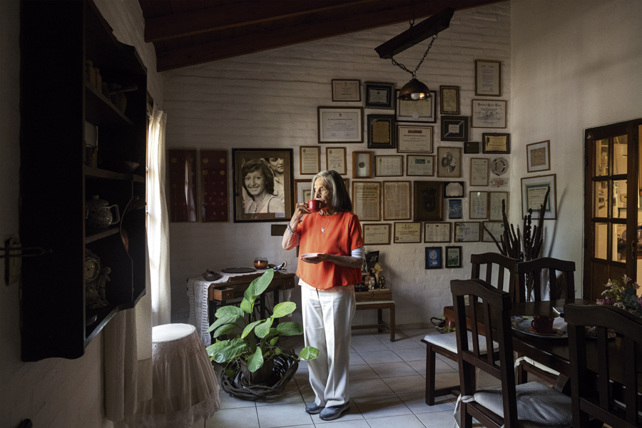 Nos acostumbramos a ver a las Madres y a las Abuelas de Plaza de Mayo en sus acciones públicas. Rondando en la plaza, marchando con banderas, con las fotos de sus hijos e hijas en alto. Las vimos resistiendo la represión durante la dictadura y durante la democracia, enfrentando a los caballos, dándose fuerza unas a otras, en medio de gases lacrimógenos. Las fotos de este proyecto vienen a hacer el recorrido inverso. No son fotos de celebración ni de denuncia ni de épica. Son fotos sensibles, amorosas que nos las devuelven a la intimidad de sus hogares, a sus afectos, al espacio privado que las cobijó, del que tal vez no hubieran salido si el terrorismo de Estado no les hubiera arrancado a sus hijas e hijos. Lugares donde descansan, cocinan, sueñan, donde se curan las heridas. Las Madres y las Abuelas fueron empujadas a torcer sus destinos. Malheridas pero vivas salieron del anonimato, interrumpieron la soledad del dolor privado y del ensimismamiento para enfrentar al terrorismo de Estado primero, y a los intentos de impunidad y de olvido después. Y en esa búsqueda se encontraron con otras madres y abuelas, con otros familiares, con otros hijos e hijas. Lograron convertir el dolor en acción colectiva y en ese recorrido se transformaron también a sí mismas.