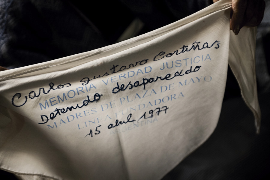 Nora Morales de Cortiñas. Su hijo Carlos Gustavo Cortiñas fue secuestrado el 15 de abril de 1977 en la estación de tren de Castelar, provincia de Buenos Aires. Tenía 24 años, era estudiante universitario, estaba casado y tenía un hijo pequeño. Aún permanece desaparecido. Junto a las Madres de Plaza de Mayo – Línea Fundadora, Nora inició un largo camino de lucha en la defensa de los derechos humanos y en la búsqueda de verdad y justicia.