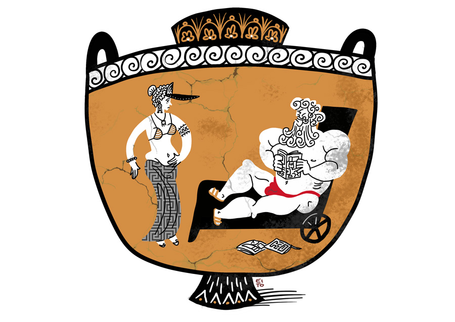 En los mitos griegos encontramos palabras como rapto, estupro, posesión y amor. Ese es el léxico con el que fueron traducidos y conservados como parte de una tradición. Benson despedaza ese velo lingüístico y expone todo lo que pueden esconder los eufemismos. Como resultado, el mito clásico de secuestros sexuales y la cultura de la violación contemporánea se vuelven mucho más familiares de lo que parecían. El Zeus de Vértigo y fantasma es un violador serial. El misógino, el chongo acosador, el seductor pasivo agresivo, el marido violento, el machito burlón, el pederasta. Además del bestiario tradicional –el toro, la lluvia dorada– Benson va al hueso metamórfico de Zeus para encontrar otras transformaciones y avatares. Un votante de Trump, un personal trainer abusador, un ex convicto por delitos sexuales con tobillera y perimetral, entre otros. En vez de túnica, tiene una zunga apretada. No empuña un rayo en el Monte Olimpo; anda armado por todos lados. Es inteligente, manipulador y un psicópata sexual. Su voz suena en mayúsculas.