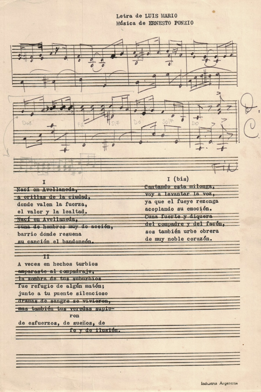Bajo el seudónimo Luis Mario y música de Ernesto Ponzio la milonga “Avellaneda” (homenaje a Alberto Barceló).