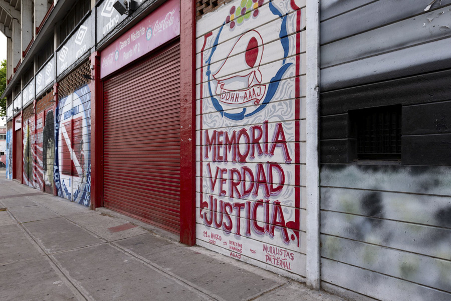 Mural en el estadio Diego Armando Maradona de la Asociación Atlética Argentinos Juniors. Archivo Memoria Abierta. Foto: Julia Flurin