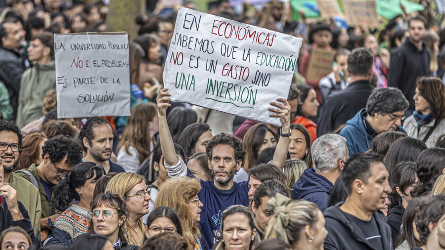 Marcha multitudinaria por la universidad pública, gratuita y de calidad donde aparecieron consignas que definen un proyecto de país. Abril 2024. Foto: Tui Guedes