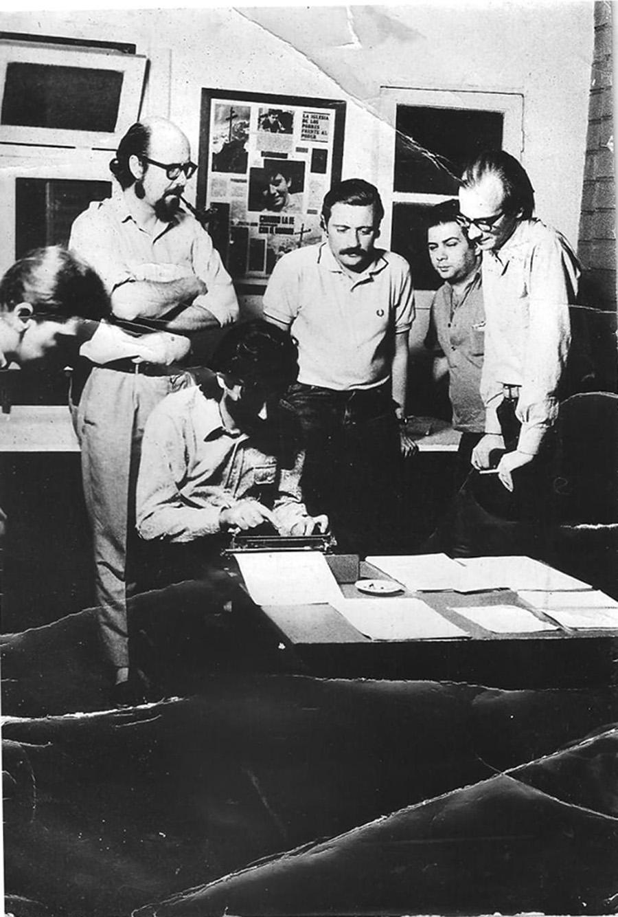 Los abogados defensores Rodolfo Ortega Peña, Eduardo Luis Duhalde, Hadalberto Caviglia, Miguel Angel Radrizani Goñi y Vicente Zito Lema (debajo) en huelga de hambre en solidaridad con los presos políticos de Villa Devoto, también en huelga desde hacía 10 días debido al trato vejatorio e injusto en sus condiciones de detención y su posible traslado a la cárcel de Rawson. Capilla Lujan de los Obreros de Villa Lugano, octubre de 1971. Foto: Archivo Marcelo Duhalde