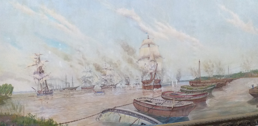 Detalle de óleo sobre tela de Ulderico Todó acerca de la Vuelta de Obligado.